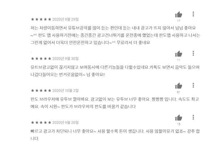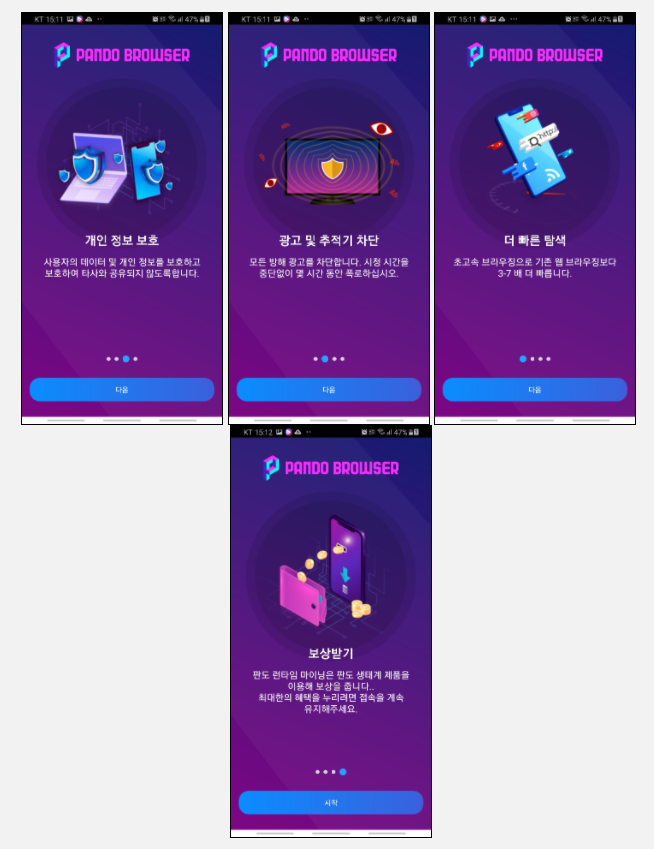 PC버전은 11월 출시 예정이며, 현재는 안드로이드 버전만 존재합니다. PANDO 브라우저는 참고로 외부 사이트의 광고도 자동으로 차단해주는 기능을 제공해주고 있답니다. 또한 web 3.0으로 기존 브라우저보다 속도도 빠르죠.