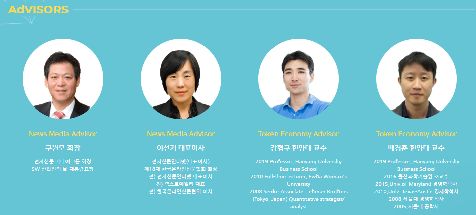 그리고 로제우스 프로젝트에서는 특이하게 어드바이저와 코어팀멤버, 그리고 파트너사를 좀 유의깊게 보셔야될 필요가 있는 것 같습니다. 어드바이저의 경우 가장 눈의 띄는 인물이 전자신문 미디어그룹회장의 구원모 회장이 눈에 띕니다. 제가 여태까지 본 어드바이저중에 역대급 어드바이저가 아닌가 생각이 듭니다.
